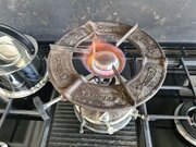 This was acquired as part of a job lot of stoves and parts. Two of the steel pot supports were seized into the brass legs. The third was loose but...