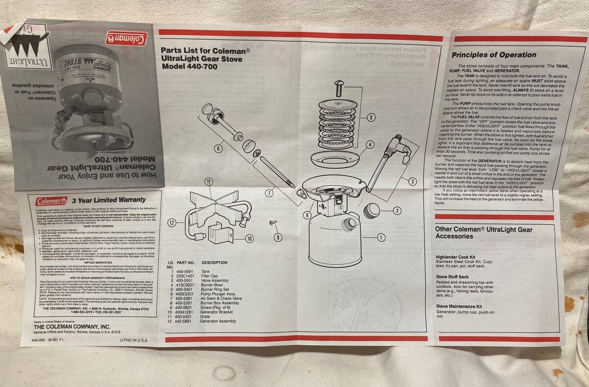 Coleman 440 NIB with instructions, never fired, I will scan the instructions and add them later.