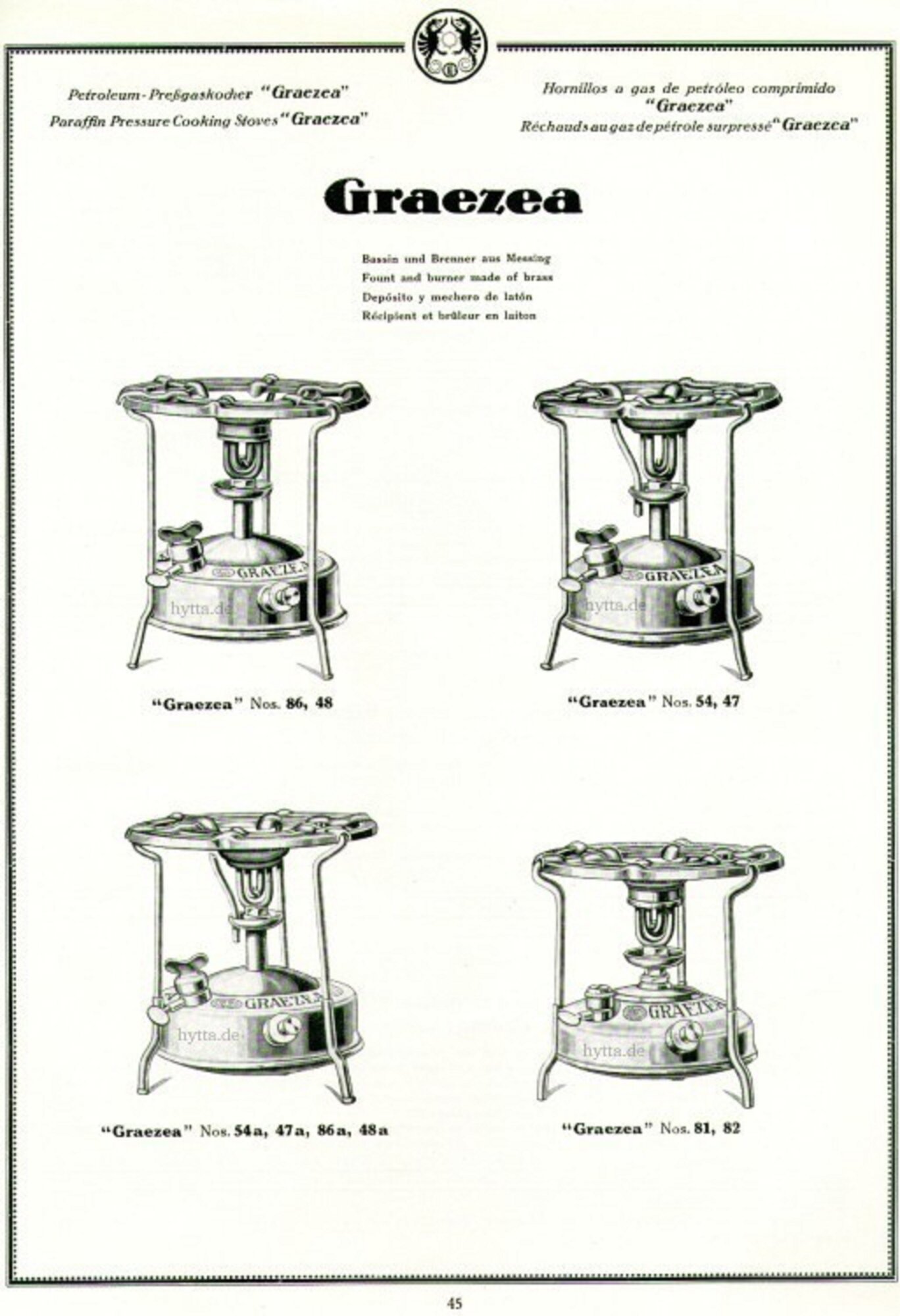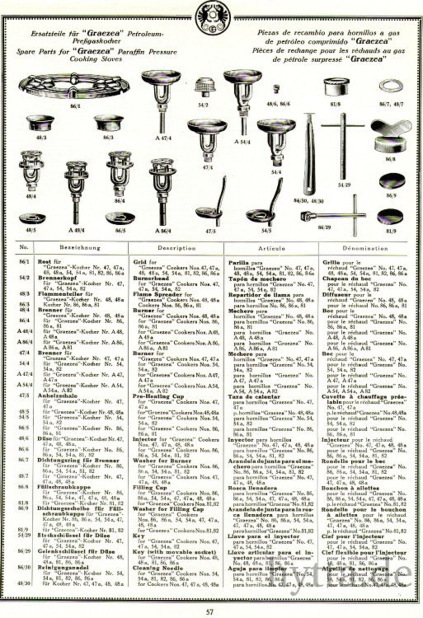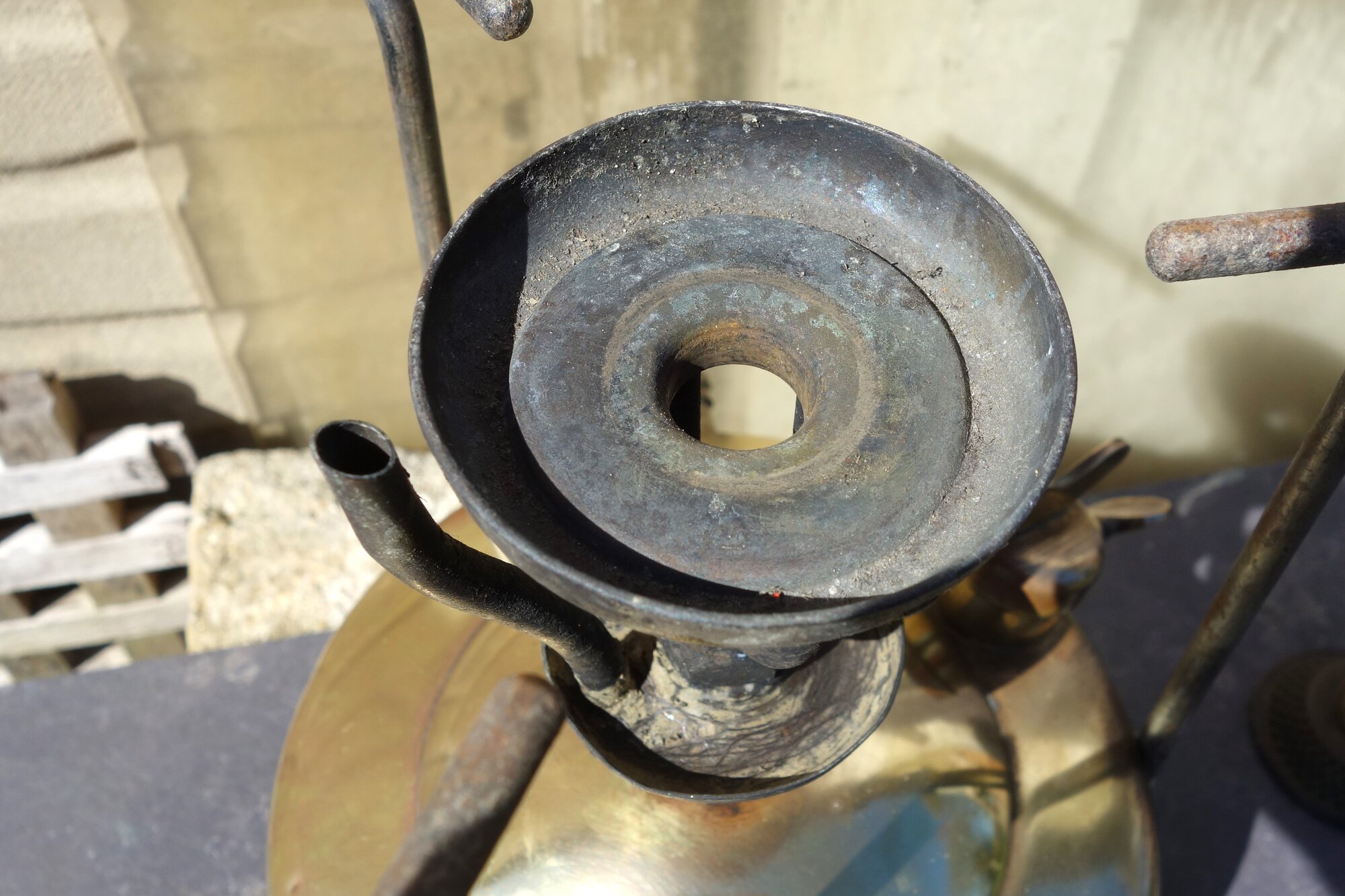 This stove has posed many questions, not least whether to present it here, or under the name of Falk, Stadelmann & Co Ltd in Great Britain. It seems unquestionable that it was made in Germany by Ehrich & Graetz, but unlike the examples in Ehrich & Graetz's own catalogues, this example has no markings of any sort either on the tank or any of the components. As such it seems more in line with some stoves made by Ehrich & Graetz for sale in Britain through Falk, Stadelmann. The lack of markings hiding the country of origin. 1930s German catalogues also show the Graezea on sale there at that time with a different form of burner cap: This next sequence is what we have here, with the silent cap being a very distictive UFO clone, and noting too the equally distinctive lighting assist tube: The rather unique burner proved very effective once a bit of experimentation had narrowed down the best set up to be with a 0.23mm economy jet: