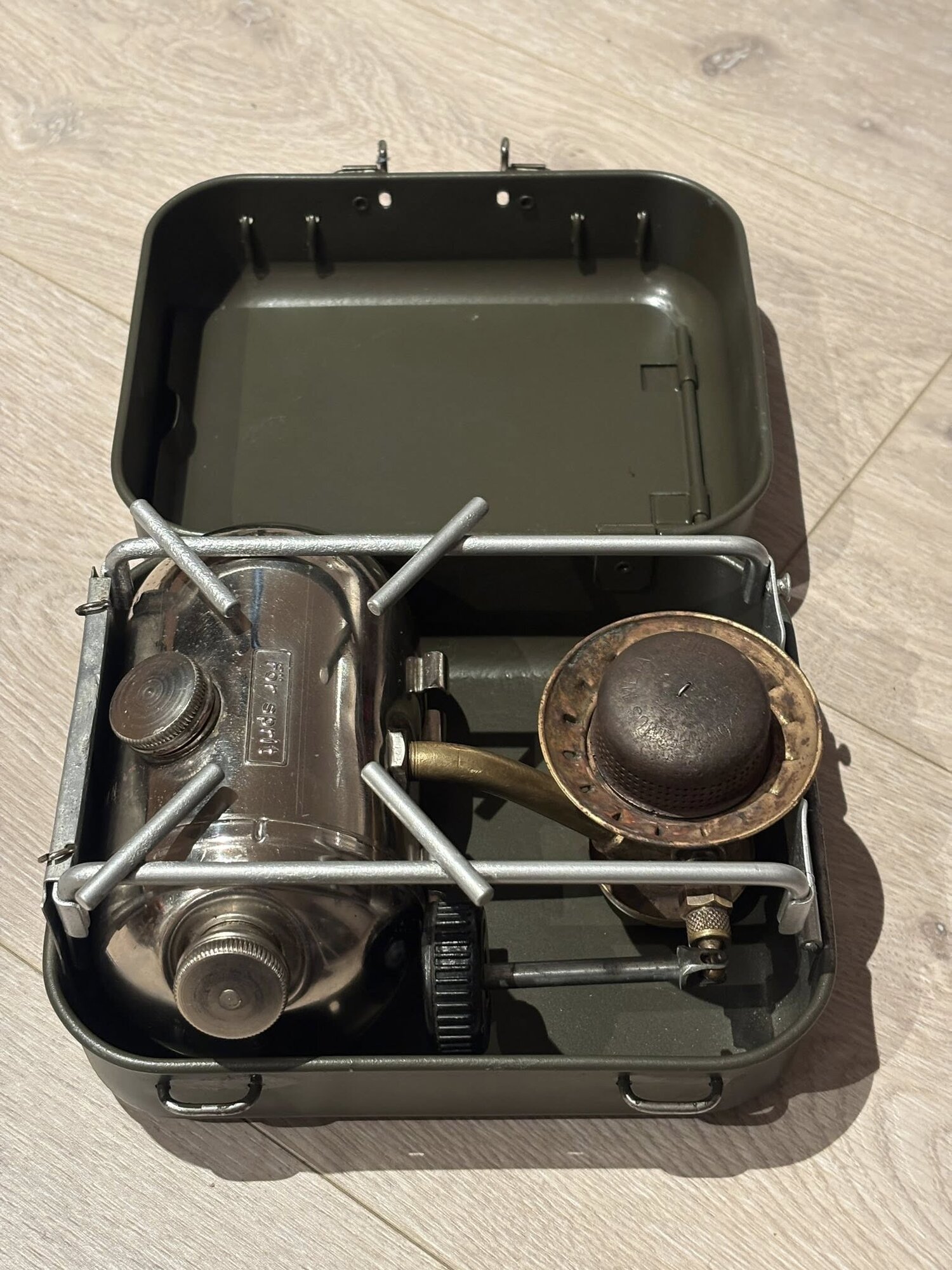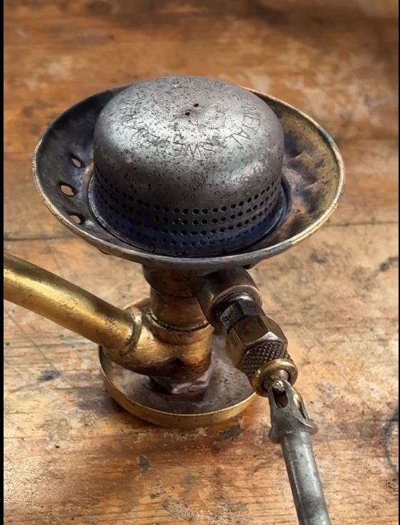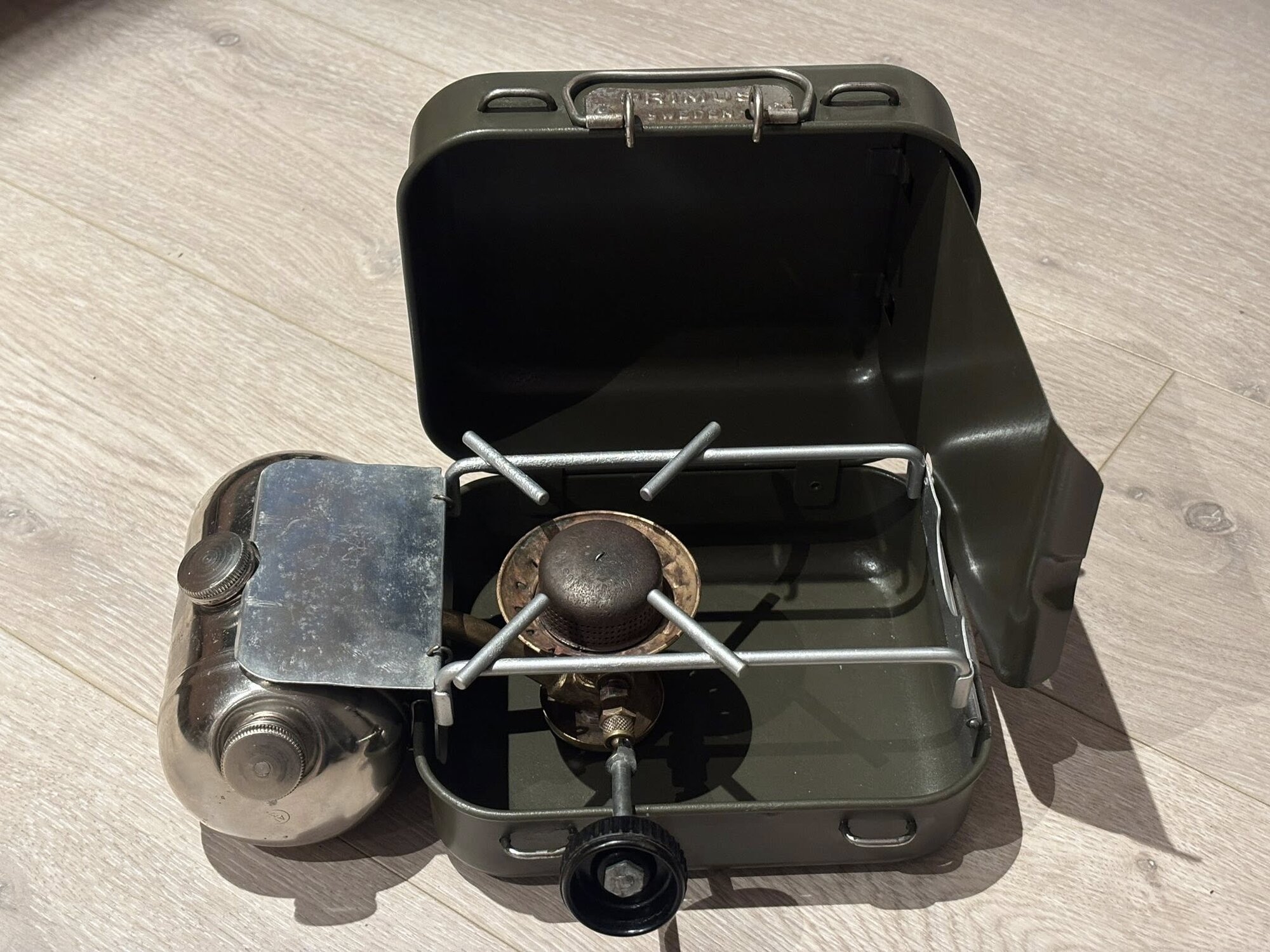 This stove had lived a very humid life before I took it over, so the tin was very rusty and almost without paint. The tank is nickel-plated and has held up well except for the gasket in the tank lid and the NRV.