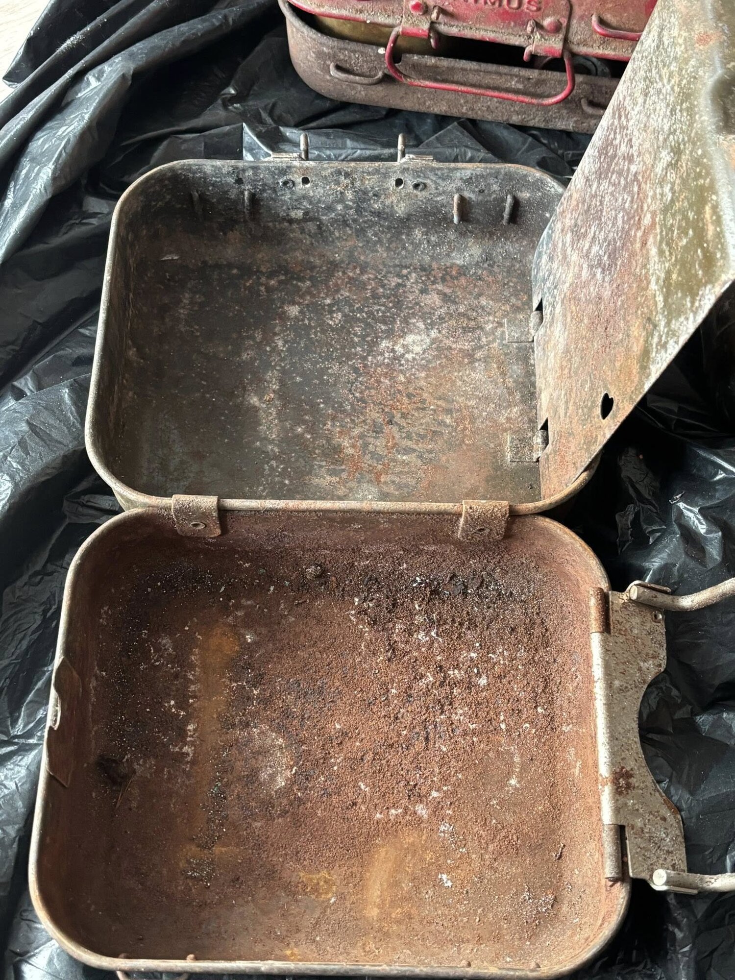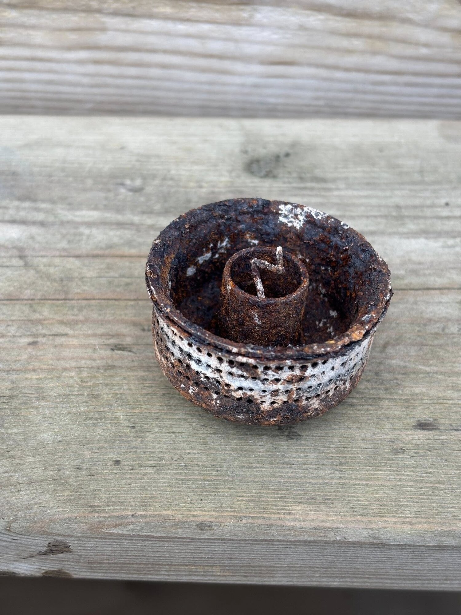 The burner, on the other hand, was very rusty and damaged. The two burner caps were rusted into one piece. The special pilot lighter was so rusty that it broke off when 'touched'. The cleaning needle was rusted and stuck in the nozzle.