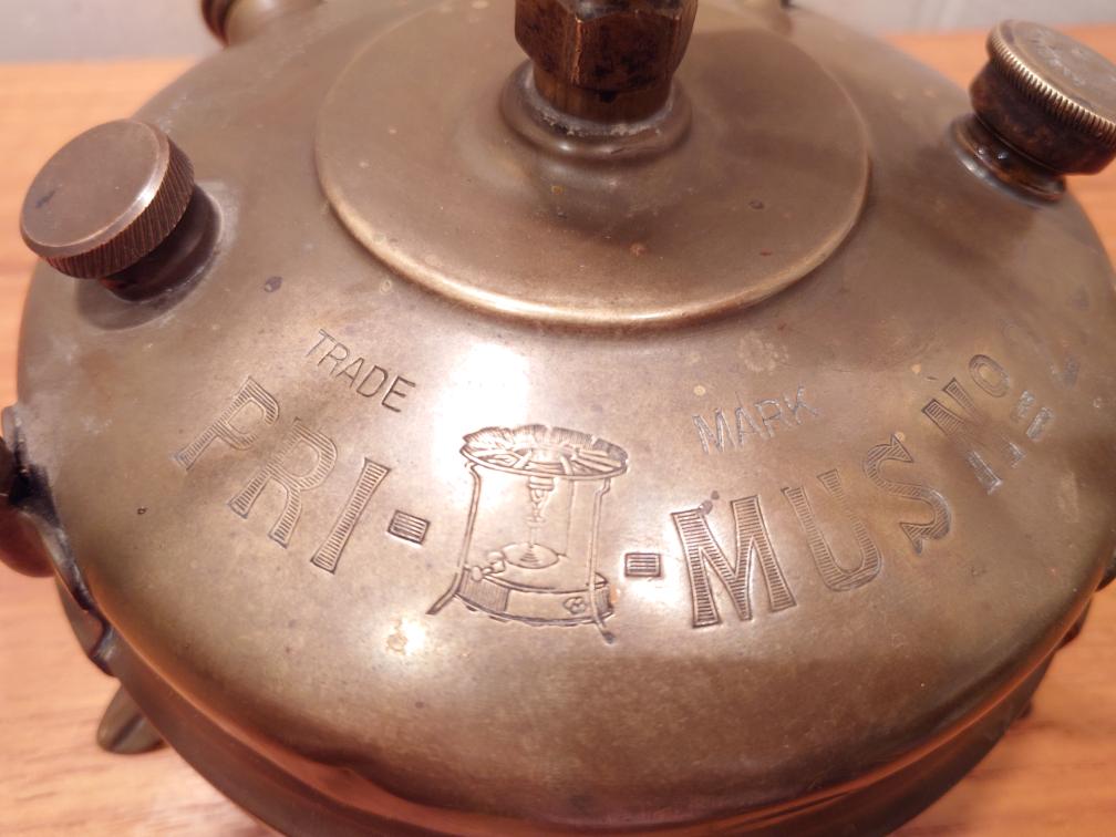 Hi Folks, Here's a "D" stamped 1914 Primus No.215 It needed a light going-over: a thorough burner clean, a fresh pump leather and the flame ring straightened. Apart from a nasty bash in its backside it has an overall decent patina Some close-up photos: Late No.221 Legs: There were no legs with it unfortunately, so I borrowed a set of late No.221 legs for a trial run (too short, but fine for a test with a gas kettle): A fine chap copied a set of No.215 legs for me and those are the ones that now live with it Much better height, looks good and its a real favourite in the "rotation" of tea-makers The 215 and 216 appear to be dinosaurs by the time this was produced, particularly since the 100 was introduced at the turn of the century. I can find these as far as 1917 but not in '22. If you had the 8-11 range, superseded by 230/221 etc, surely the gap is plugged by the 100 for a large portable (to say nothing of the discus when they found their stride). You could say the discus superseded the 15/15a/215 etc etc but there was a heck of an overlap. One of these legacy lines they seemed so keen to hang onto, I really don't understand why Primus spread themselves so thin in these few years, almost as if there were ongoing debates over style/function/direction, pet projects by engineers/designers who wouldn't back down, or trying to find the tiniest gap in the market to see what would take-off? I do like it though, different shape, strong performer, although not as compact as its brothers and sisters, that was perhaps its downfall? A similar performing/capacity stove could be produced in a more compact package? Anyway, enough musings and more Tea! Alec. @igh371